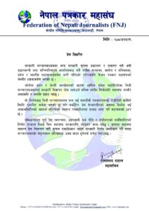 काठमाडौ । सरकारी सञ्चारमाध्यममा मात्र सरकारी सूचना प्रकाशन र प्रसारण गर्ने भनी प्रधानमन्त्री तथा मन्त्रिपरिषद्को कार्यालयबाट सबै संघीय मन्त्रालय, आयोग र सचिवालय, प्रदेश र स्थानीय तहहरूलाईसमेत जारी गरिएको परिपत्रप्रति नेपाल पत्रकार महासंघले गम्भीर ध्यानाकर्षण भएको जनाएको छ।
